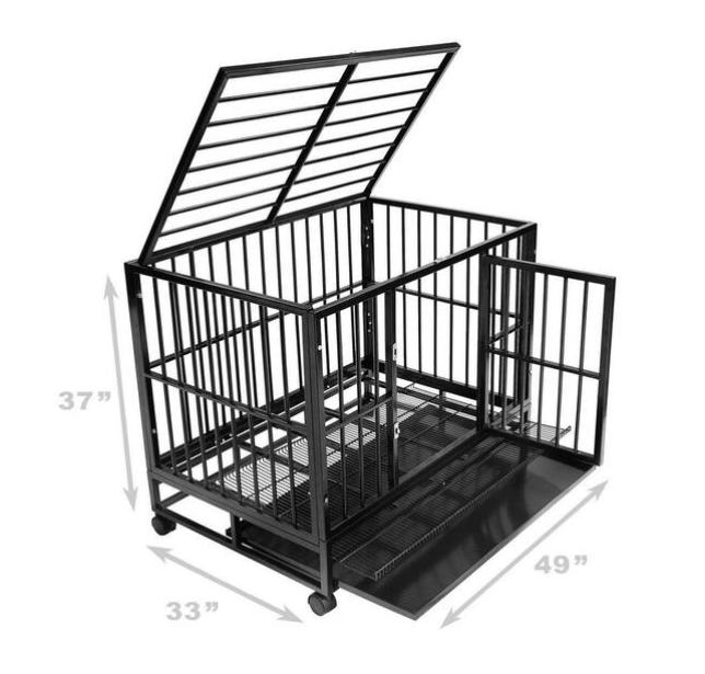 प्रीमियम बांधकाम: हेवी-ड्यूटी, मजबूत पाळीव प्राणी क्रेट व्यावसायिक दर्जाच्या स्टीलपासून तयार केले गेले आहे, जे पाळीव प्राण्यांची सुरक्षा, आराम आणि दीर्घकाळ टिकणारी टिकाऊपणा सुनिश्चित करण्यासाठी व्यावसायिकरित्या तयार केलेले आहे. पिंजऱ्यामध्ये 1/2-इंच व्यास (20-गेज) वेल्डेड स्टील टयूबिंगसह मजबूत केलेली 3/4-इंच फ्रेम आहे, वरपासून खालपर्यंत सर्वसमावेशक ताकद आणि टिकाऊपणा प्रदान करते.