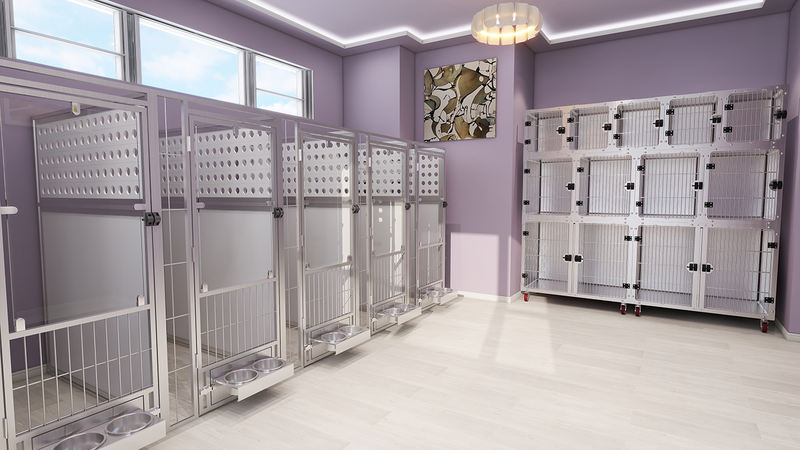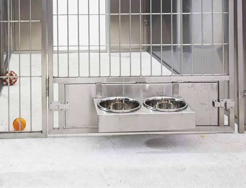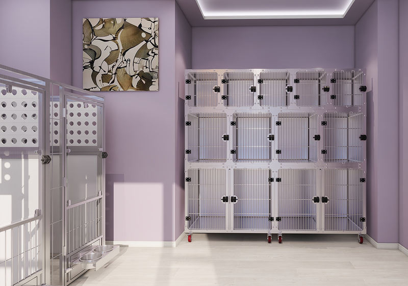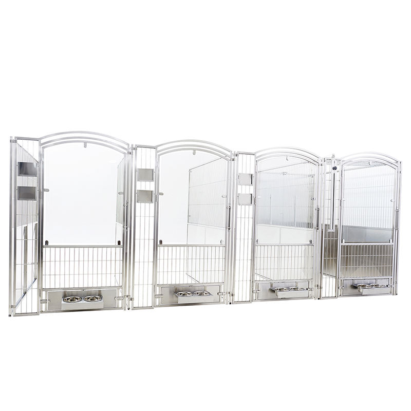 बहुउद्देशीय ॲनिमल बोर्डिंग आणि क्वारंटाईन केज प्राण्यांच्या ओरखडे पूर्णपणे प्रतिबंधित करताना अपवादात्मकपणे दीर्घ सेवा आयुष्य सुनिश्चित करण्यासाठी मजबूत, सुरक्षा-स्वभावयुक्त काच वापरतात. पूर्णपणे वेल्डेड केज बॉडीमध्ये सहज साफसफाई आणि स्वच्छता राखण्यासाठी गोलाकार कोपरे आहेत. पिंजरा युनिट्स थेट विद्यमान खिडक्यांसमोर ठेवता येतात, ज्यामुळे ते विशेषतः पिल्लांच्या विक्रीसाठी आणि दत्तक घेण्याच्या क्षेत्रासाठी योग्य बनतात.